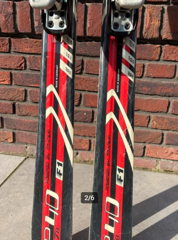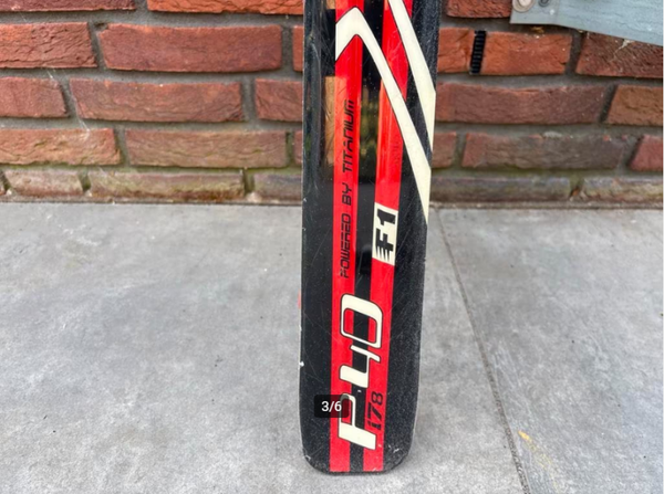 een paar klassieke Völkl P40 F1 ski’s (178 cm).